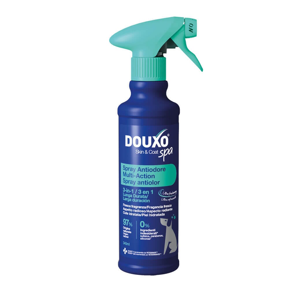 DOUXO® SPA Spray Antiodore 3-in-1 per Cani è la soluzione ideale per una routine antiodore ultra-safe, semplice e completa. Raccomandato dai Medici Veterinari e approvato dai pet owner, DOUXO® SPA Spray Antiodore 3-in-1 nutre la cute e dona al tuo cane un profumo fresco e un mantello luminoso.* Con ingredienti naturali e di alta qualità per la massima sicurezza ed efficacia, DOUXO® SPA Spray Antiodore 3-in-1 è il prodotto ideale per un trattamento piacevole e sicuro.