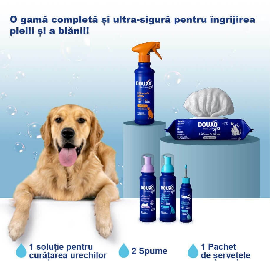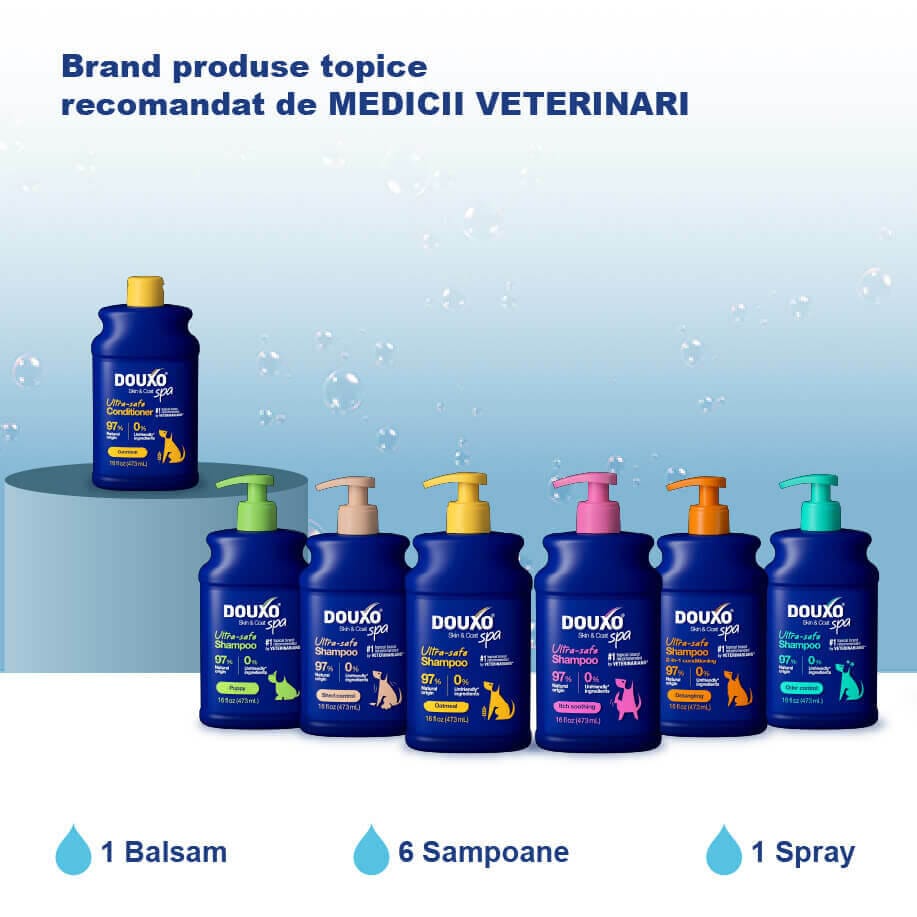 Când alegi DOUXO® SPA, alegi standardul de aur în îngrijirea pielii și blănii animalului tău.